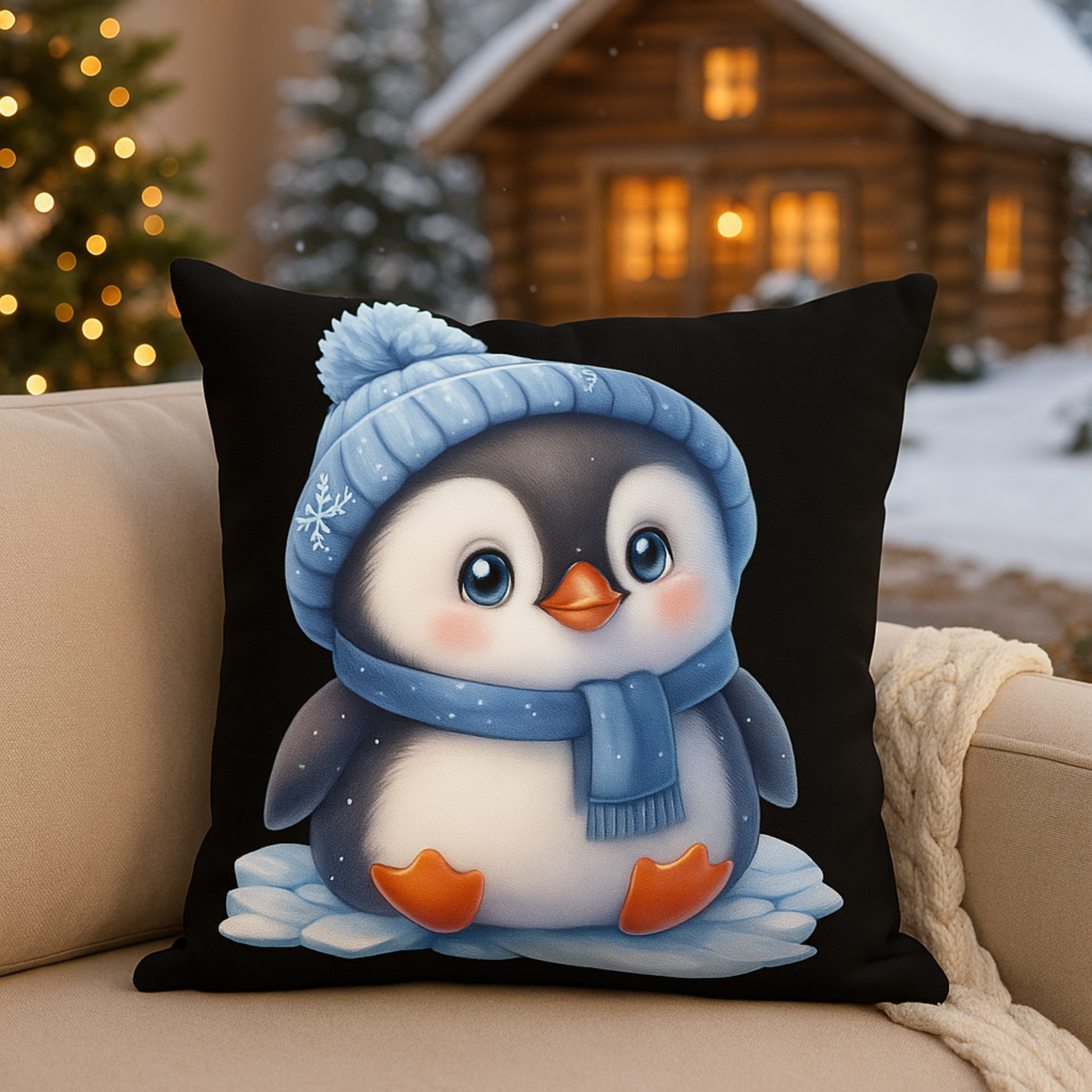 Meet the coziest little penguin of the season! Bundled in a knitted hat and scarf, this adorable arctic friend brings winter warmth and playful charm to your space. Whether perched on your sofa or gifted to someone who loves the magic of snowy days, this pillow is pure cold-weather comfort.